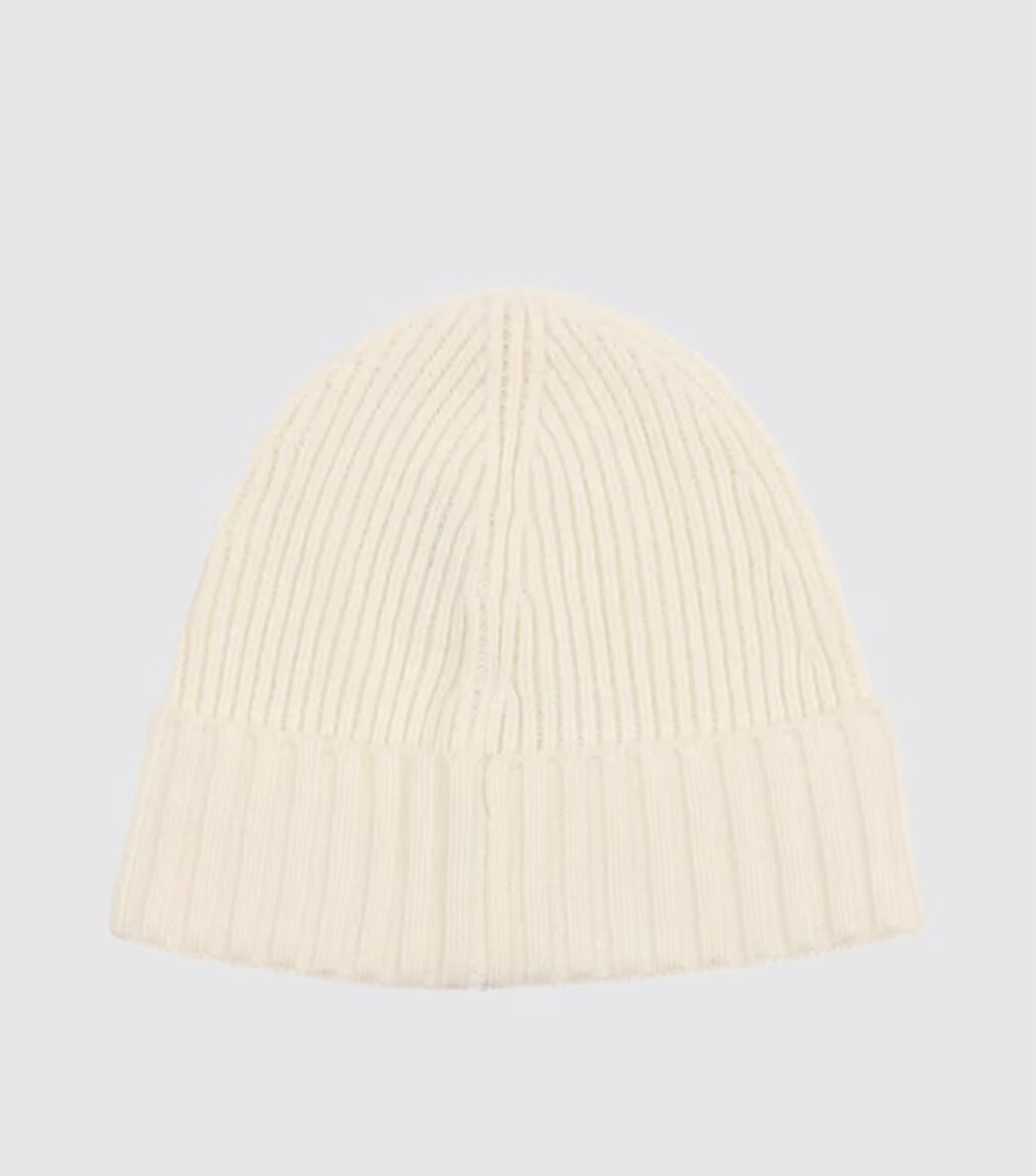 Bonnet en pure laine finement côtelée. Jauge 14.