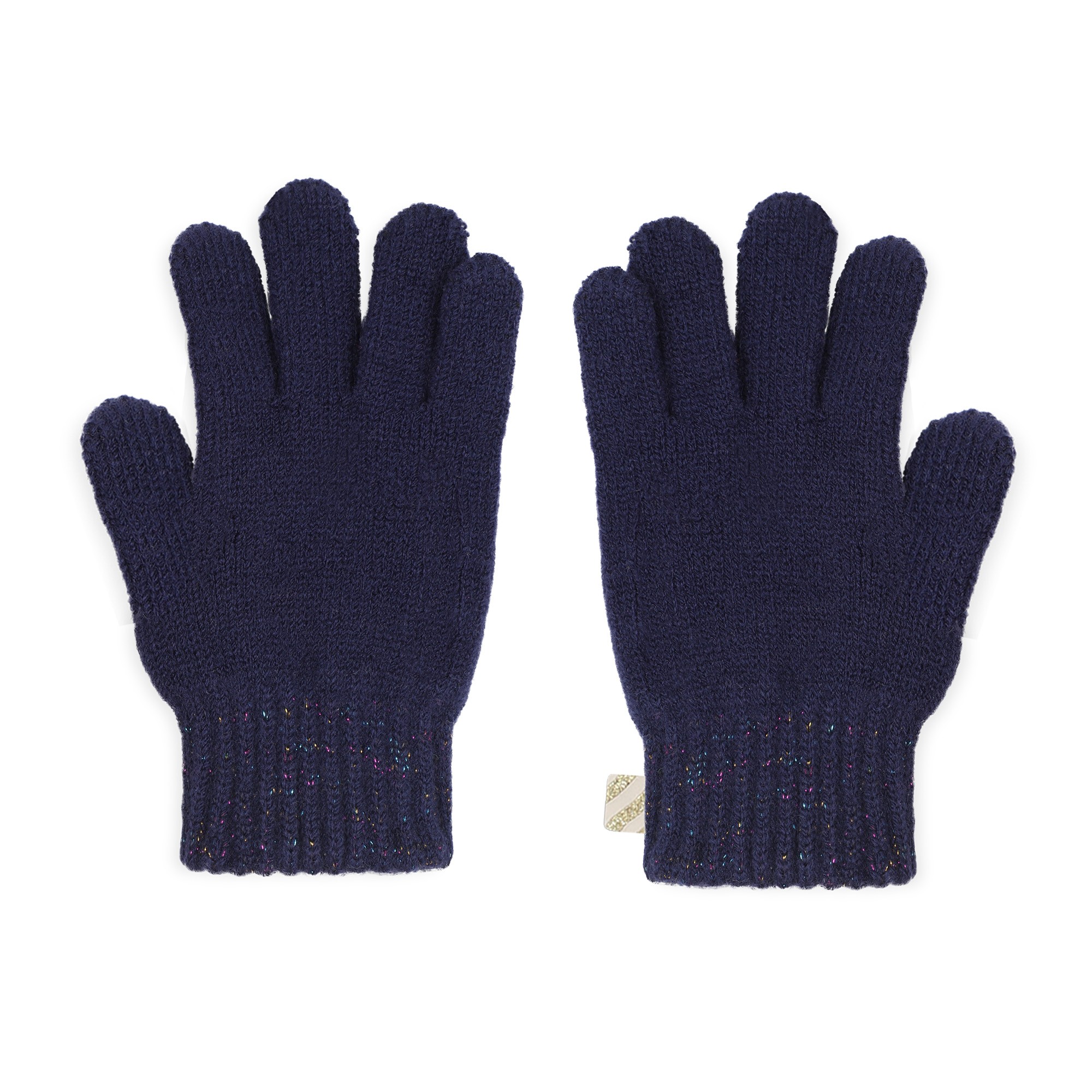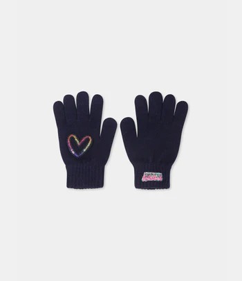GANTS AVEC COEUR: Gants tricotés bleu avec ourlet côtelé. Ils sont décorés d'un logo caoutchouté sur le devant et d'un cœur à paillettes sur un côté. Details: 100% Acrylique. Laver à 30°C.
