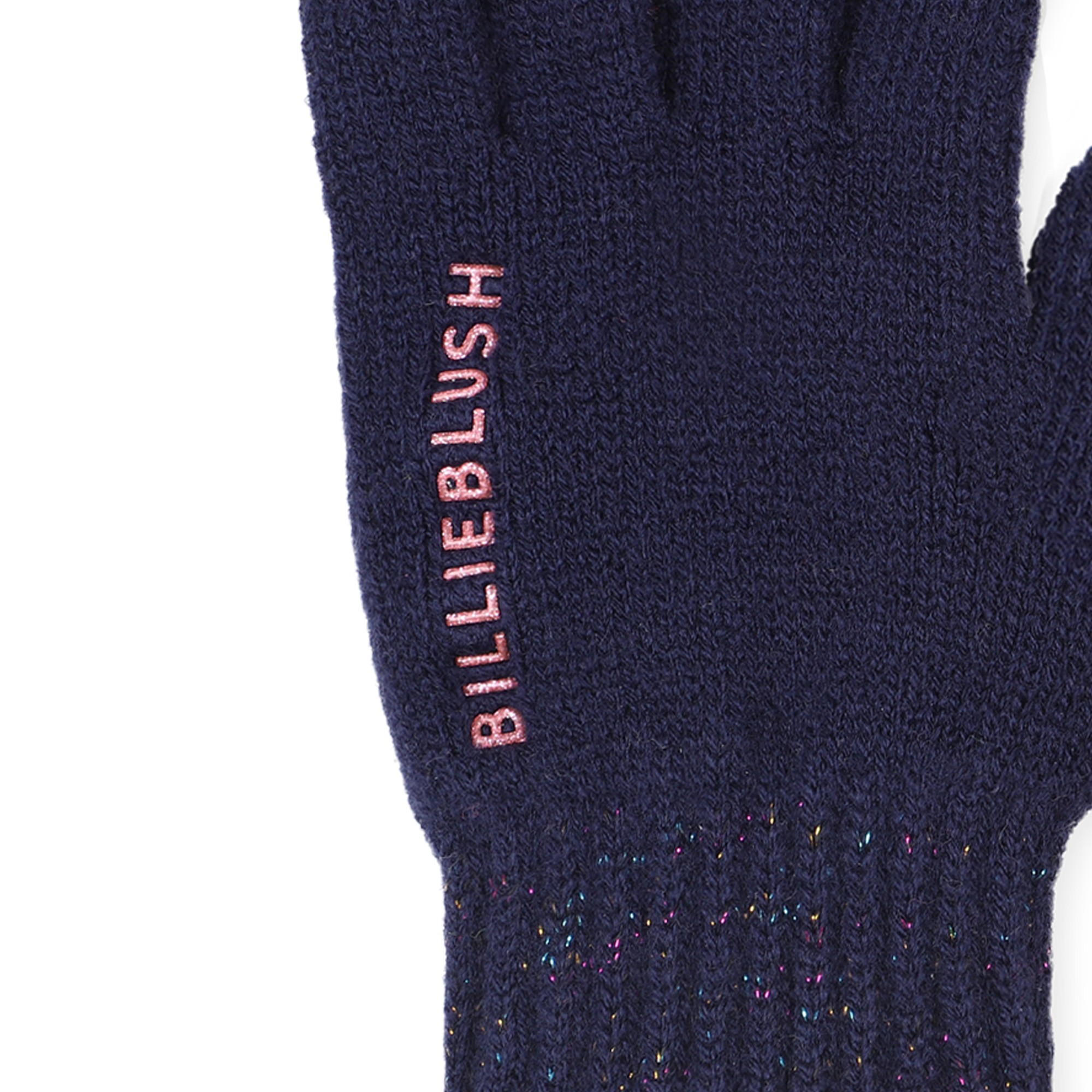 GANTS AVEC LOGO : Ces gants BILLIEBLUSH en tricot avec fil aspect métallique ajoutent une touche de brillance à votre look. Le sigle en silicone à paillettes et l'étiquette tissée rayée sur le côté apportent des détails élégants et modernes, parfaits pour garder les mains au chaud avec style.