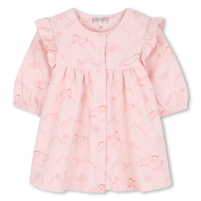 Ce ravissant ensemble signé KENZO KIDS réunit trois pièces coordonnées pour un look aussi confortable que raffiné. La robe en velours à manches longues séduit par son imprimé siglé, ses fronces délicates sous la poitrine et ses volants aux manches. Le legging en coton doux suit les mouvements avec sa taille élastiquée et son logo en bas de jambe. Le bandeau assorti, orné d'un noeud en velours, complète cette tenue adorable à souhait.