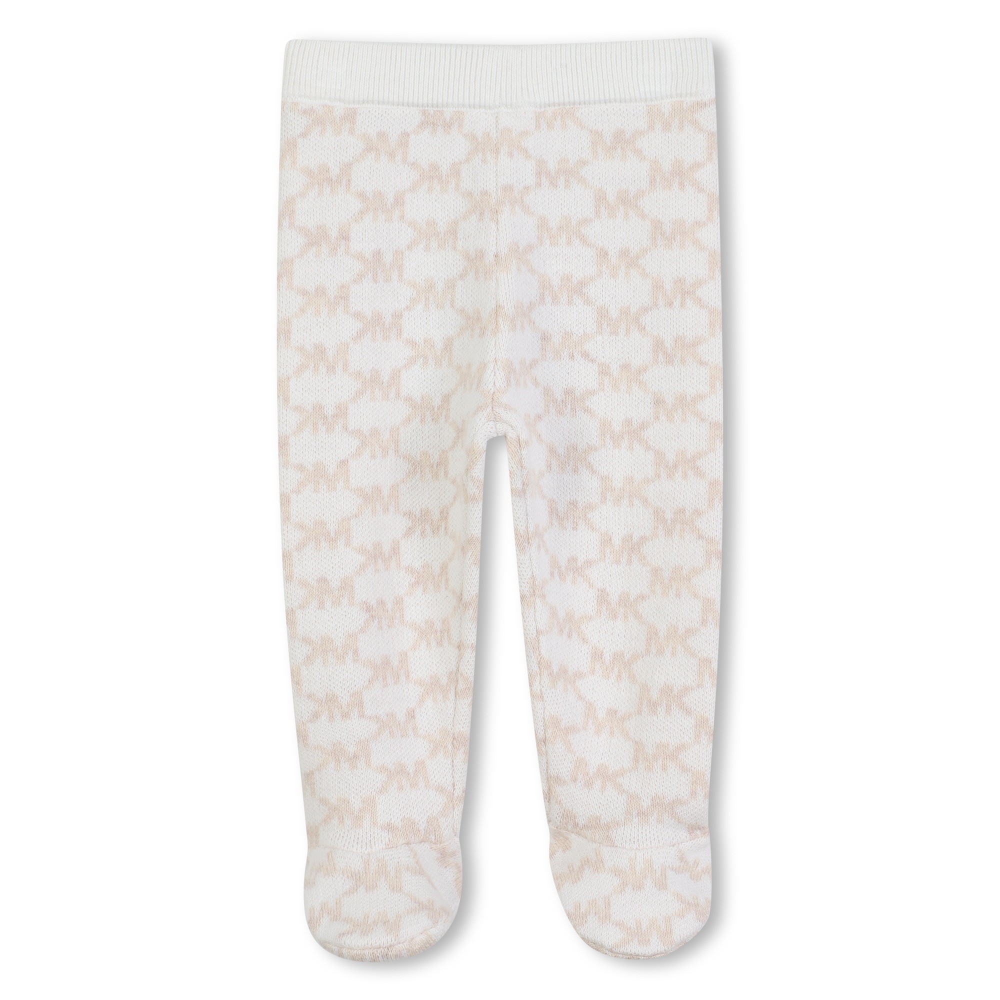 Affichez votre style avec cet ensemble en tricot MICHAEL KORS, où confort et luxe se rencontrent. Le cardigan uni, sublimé par un jacquard 'MK empire' sur le devant et une fermeture boutonnée siglée, incarne une élégance moderne. Le pantalon et le bonnet assortis viennent parfaire l'ensemble avec leur jacquard siglé, créant une silhouette raffinée et cohérente qui respire le luxe.
