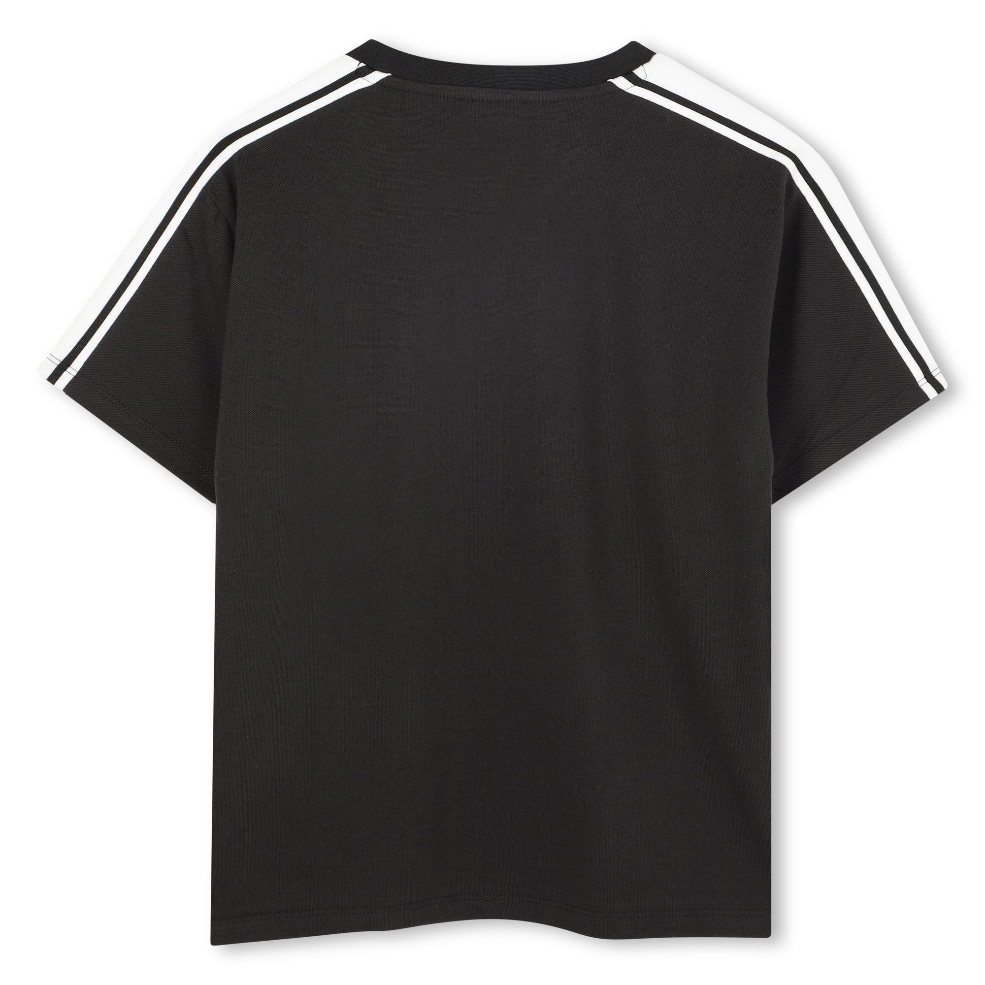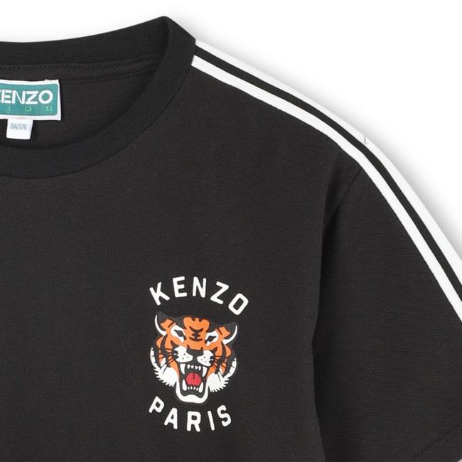 Un t-shirt qui allie confort et style avec ses bandes contrastées sur les manches et son imagerie brodée sur la poitrine. Ce modèle KENZO KIDS transforme un basique en pièce tendance, idéale pour ceux qui aiment les looks simples mais percutants.