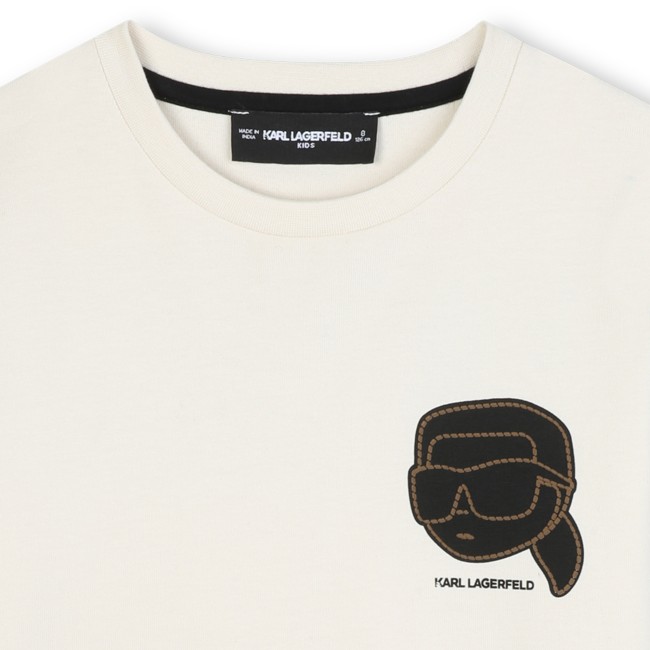 Ce t-shirt à manches longues en coton lourd séduit par son toucher épais et sa coupe actuelle. Idéal pour les saisons intermédiaires, il affiche un visuel graphique signé KARL LAGERFELD KIDS, pour une tenue casual mais stylée du matin au soir.