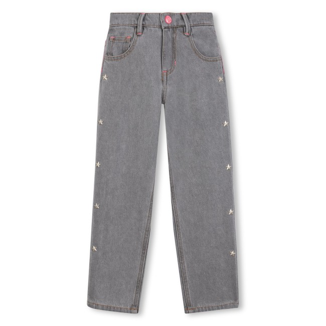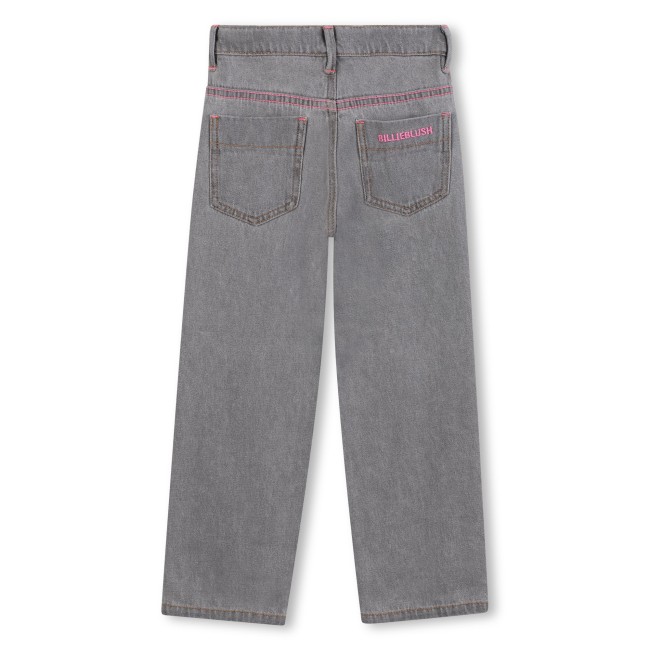 PANTALON EN DENIM GRIS : Ajoutez une touche de fun et de style au dressing de votre enfant avec ce pantalon en denim BILLIEBLUSH. Ses cinq poches pratiques, ainsi que les clous en étoiles sur les côtés, créent un look audacieux et tendance. La broderie du logo dans le dos et la taille ajustable assurent un ajustement parfait, tandis que la fermeture braguette et la coupe regular garantissent confort et praticité. Un modèle parfait pour un look à la fois moderne et original.
