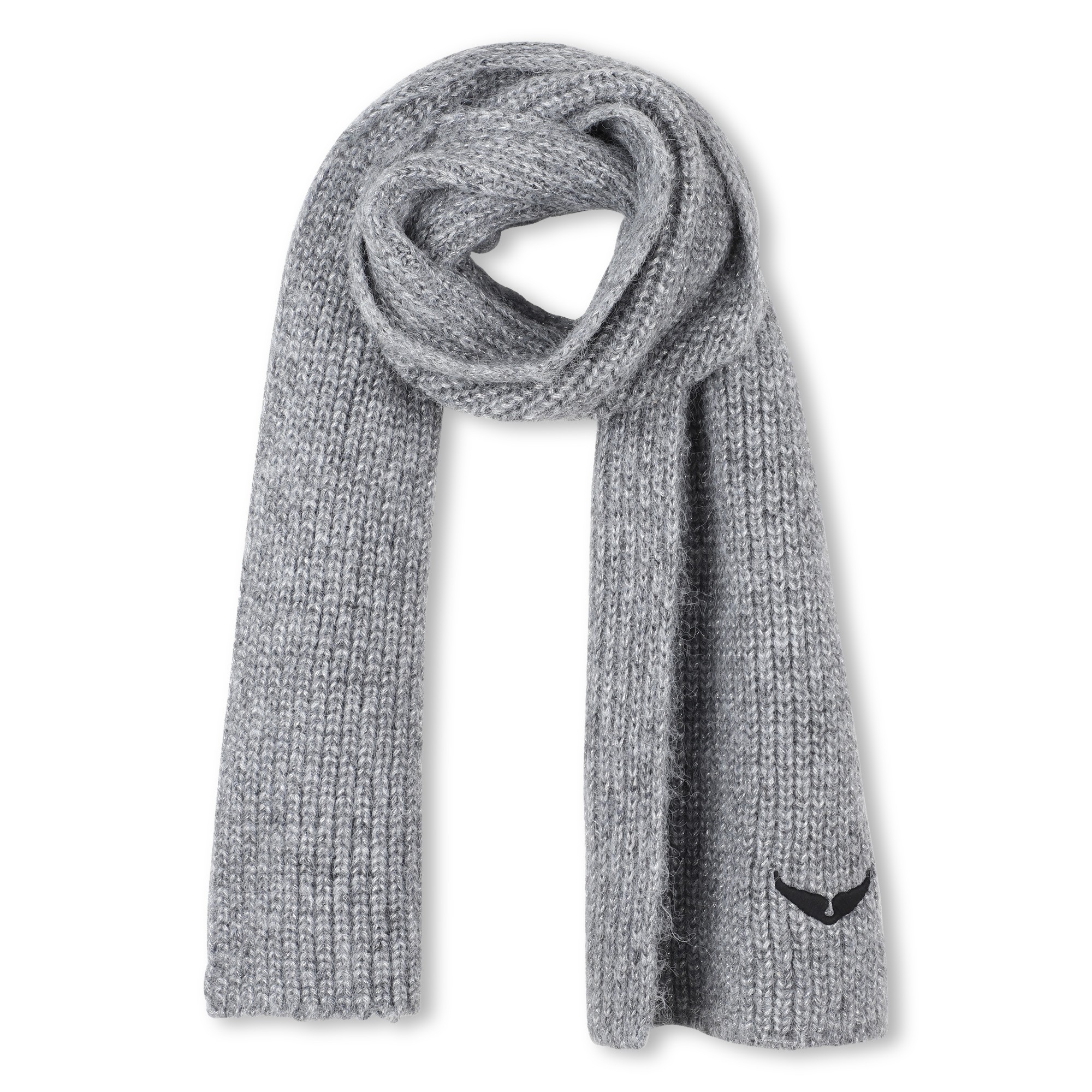 ZADIG&VOLTAIRE propose une écharpe tricotée aux fils aspect métallique, parfaite pour illuminer l'hiver. Sa texture moelleuse réchauffe avec style, tandis que sa broderie "Ailes" signe un look résolument tendance.