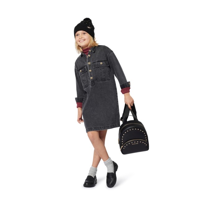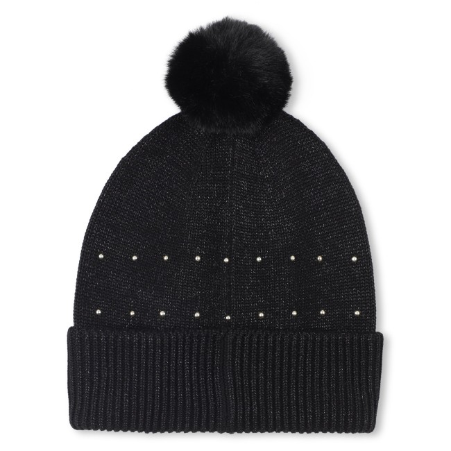 Élevez votre style hivernal avec ce bonnet tricot MICHAEL KORS. Orné d'un pompon classique et de clous dorés subtils, il incarne le luxe décontracté. La médaille dorée siglée sur le côté ajoute une touche de raffinement.