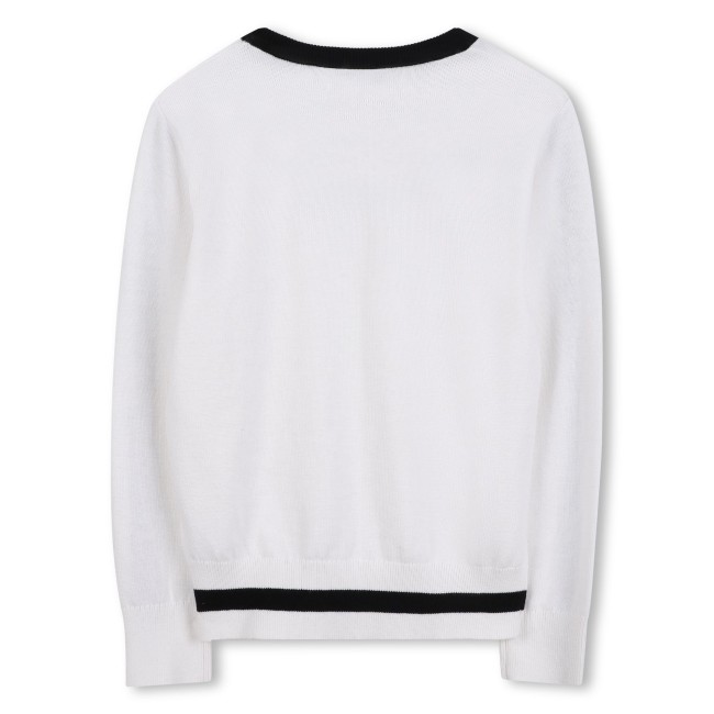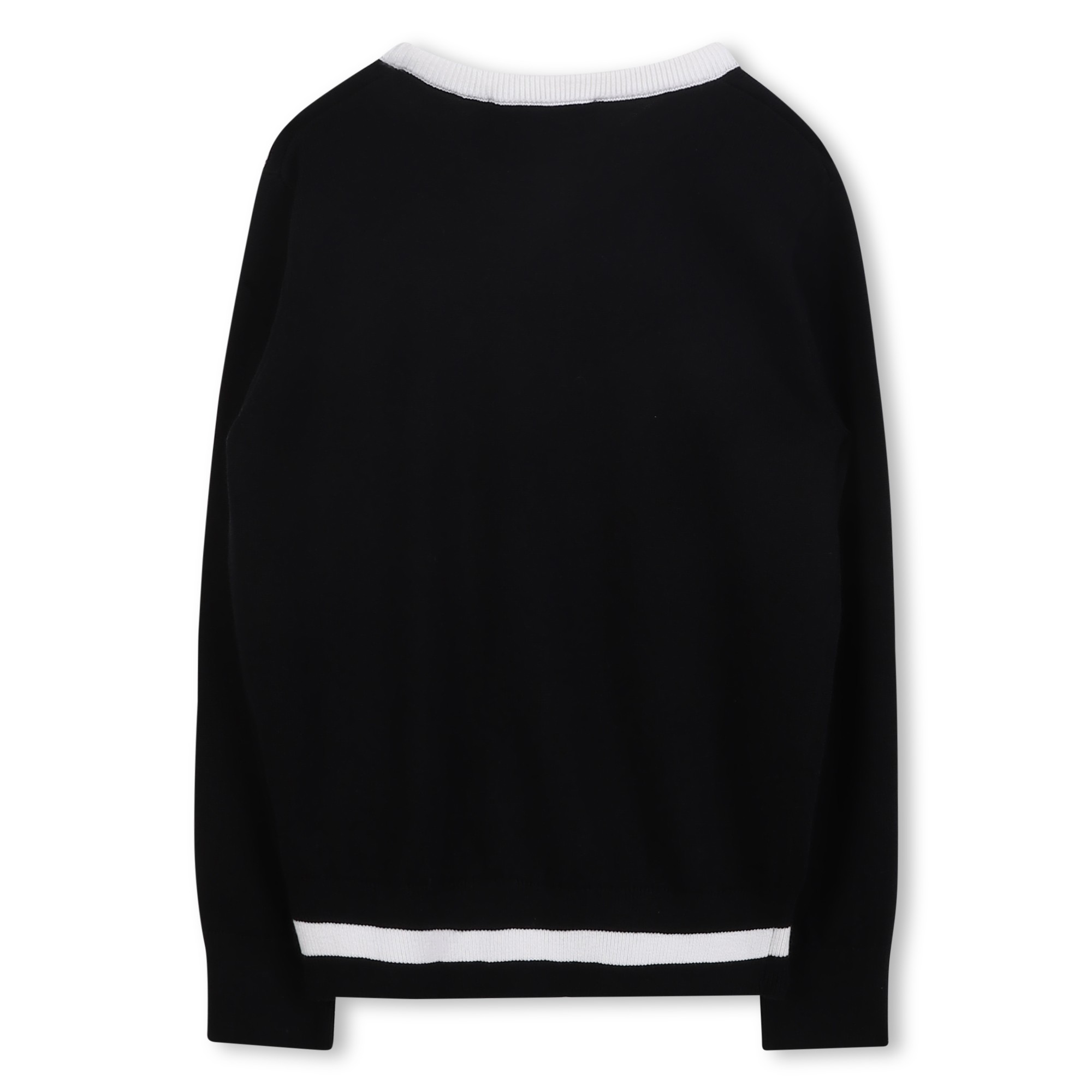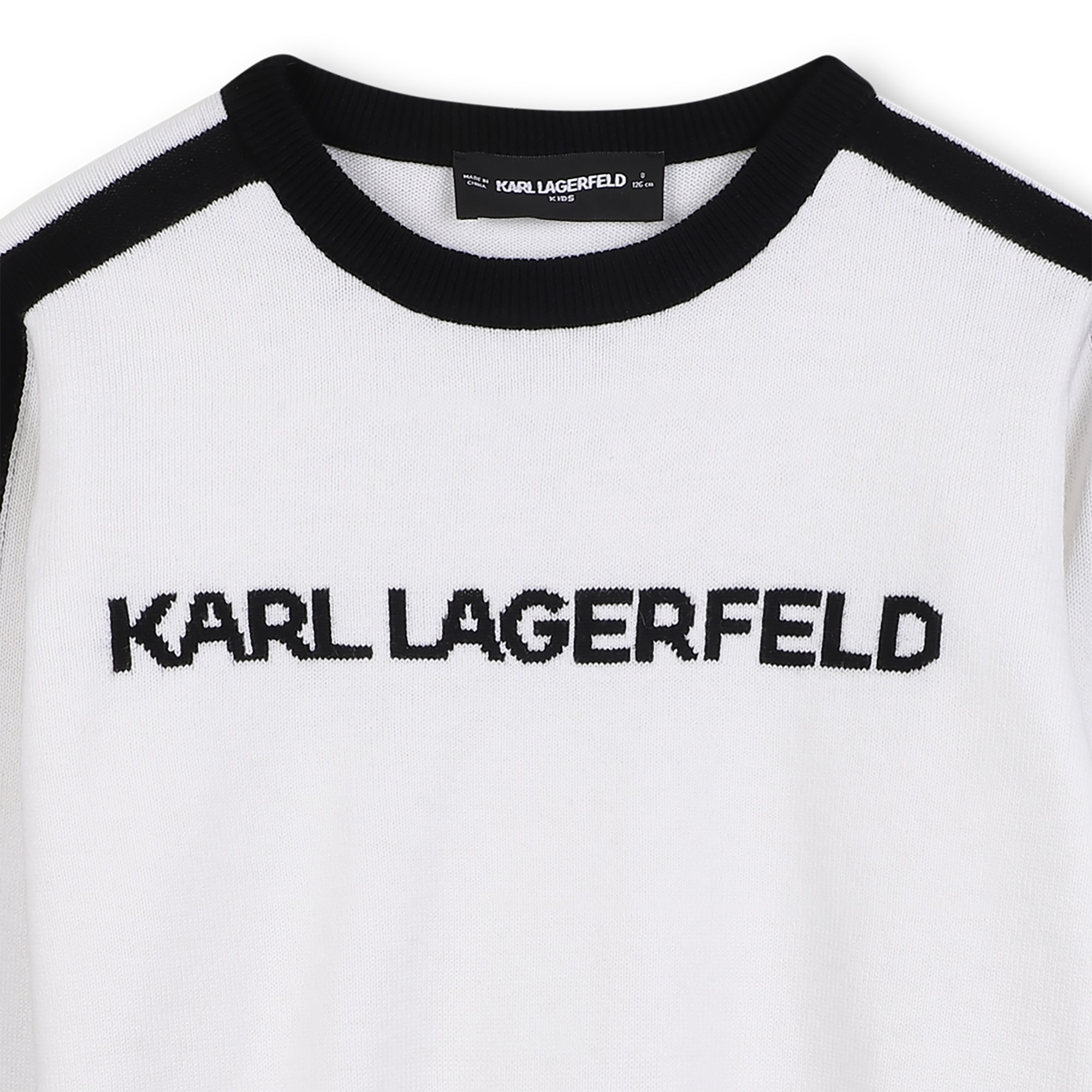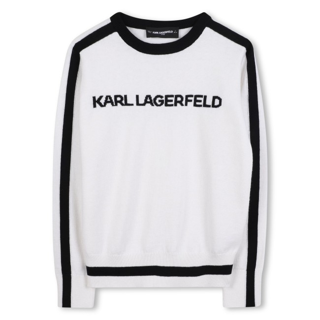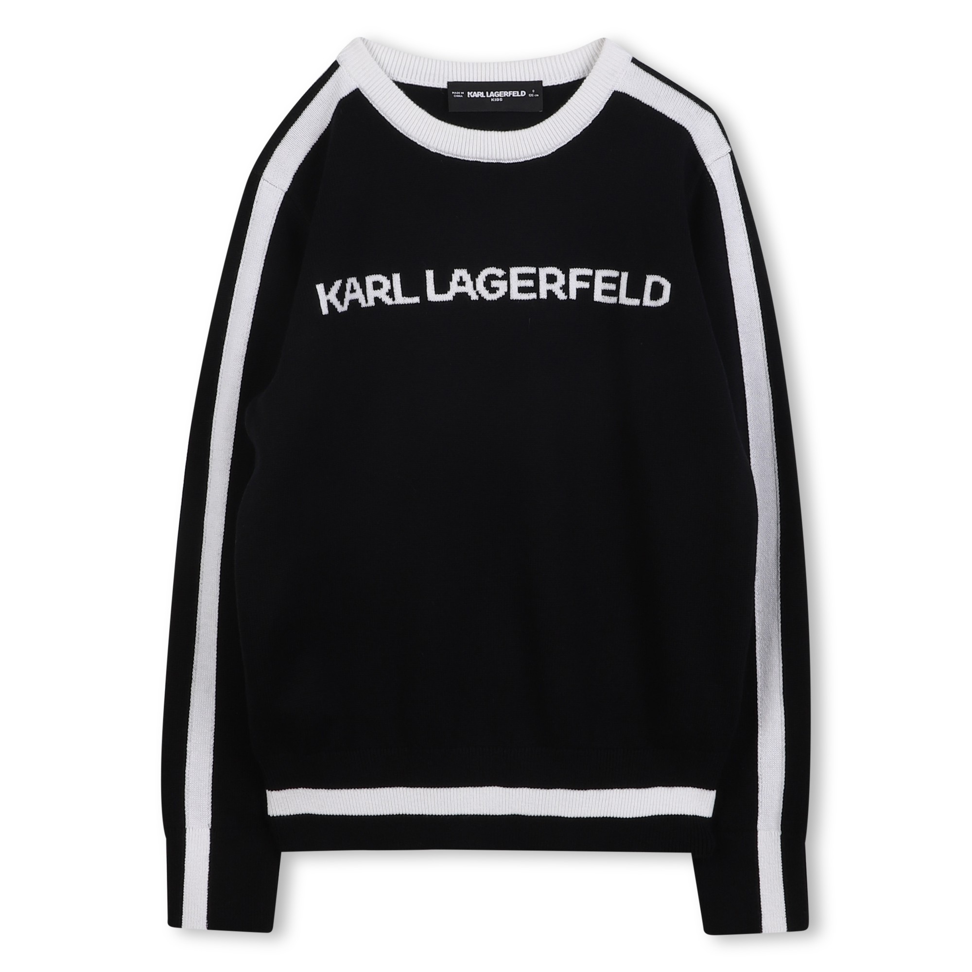 Ce pull doux en coton enrichi offre une élégance casual idéale pour les journées fraîches. Ses rayures contrastées ajoutent une touche graphique pleine de caractère. Un essentiel intemporel signé KARL LAGERFELD KIDS, parfait pour les petits explorateurs à l'allure soignée.