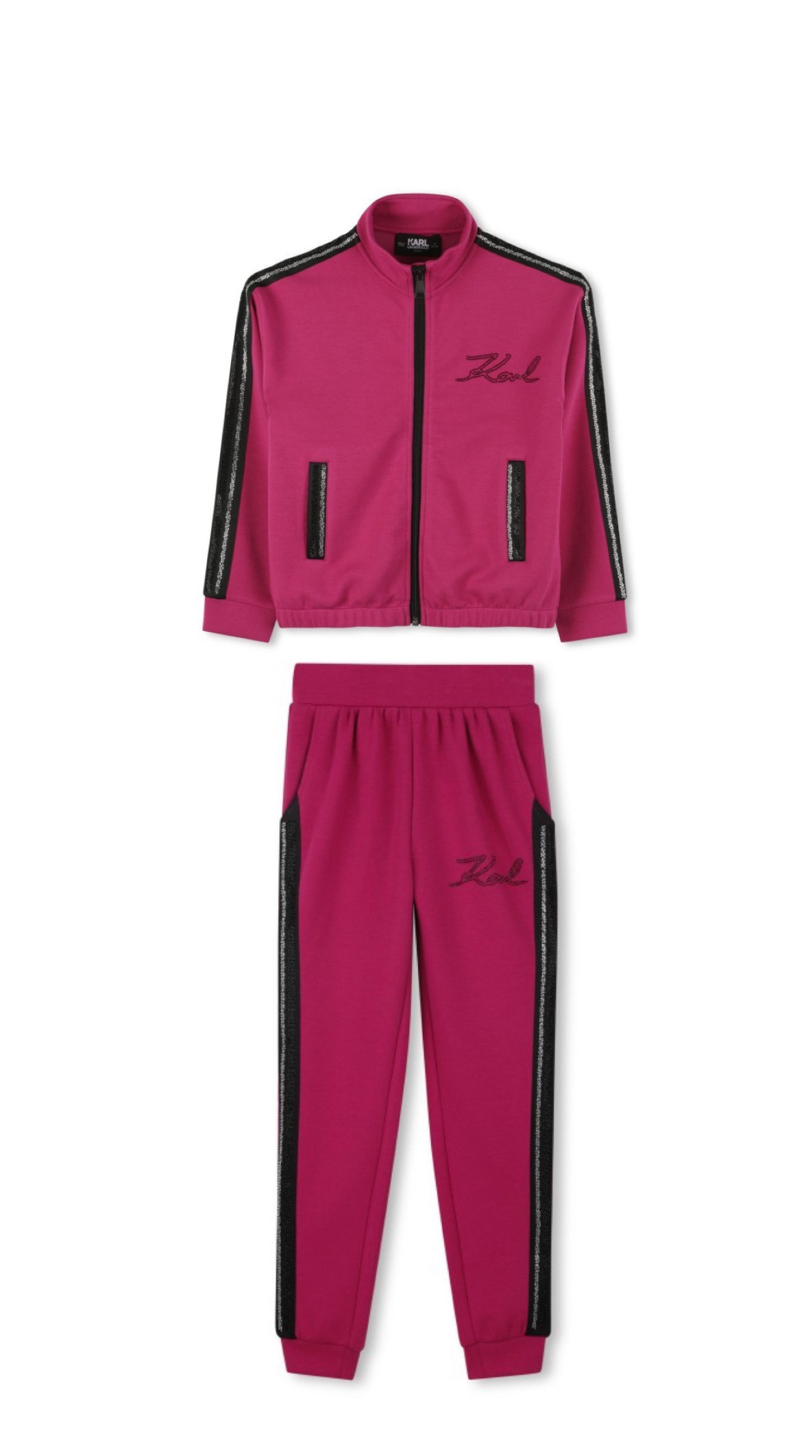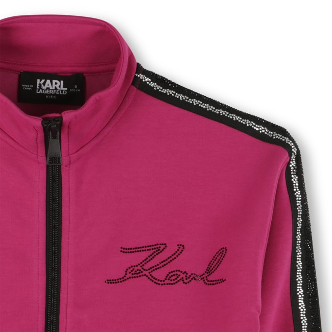 Chic et élégant, ce cardigan KARL LAGERFELD KIDS en double jersey est orné de poches pratiques et d'une bande de strass sur les manches et poches, ajoutant une brillance délicate à votre tenue. La signature en strass siglée KARL sur la poitrine complète ce modèle avec une touche de luxe discrète et tendance.