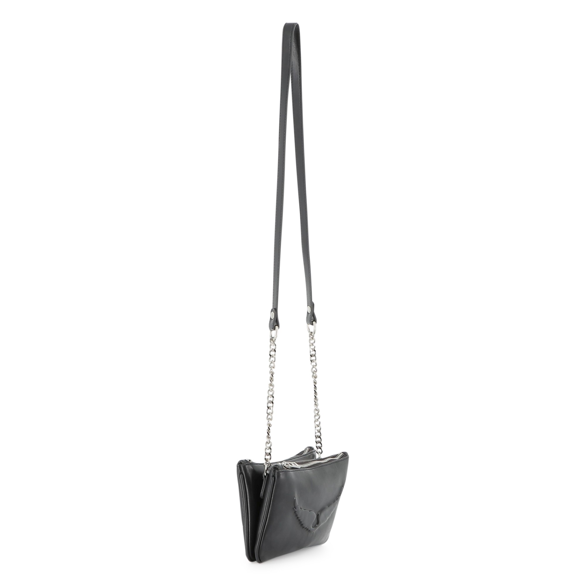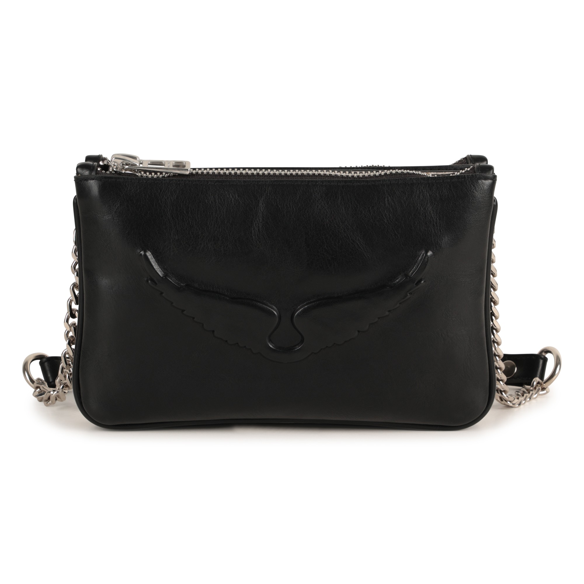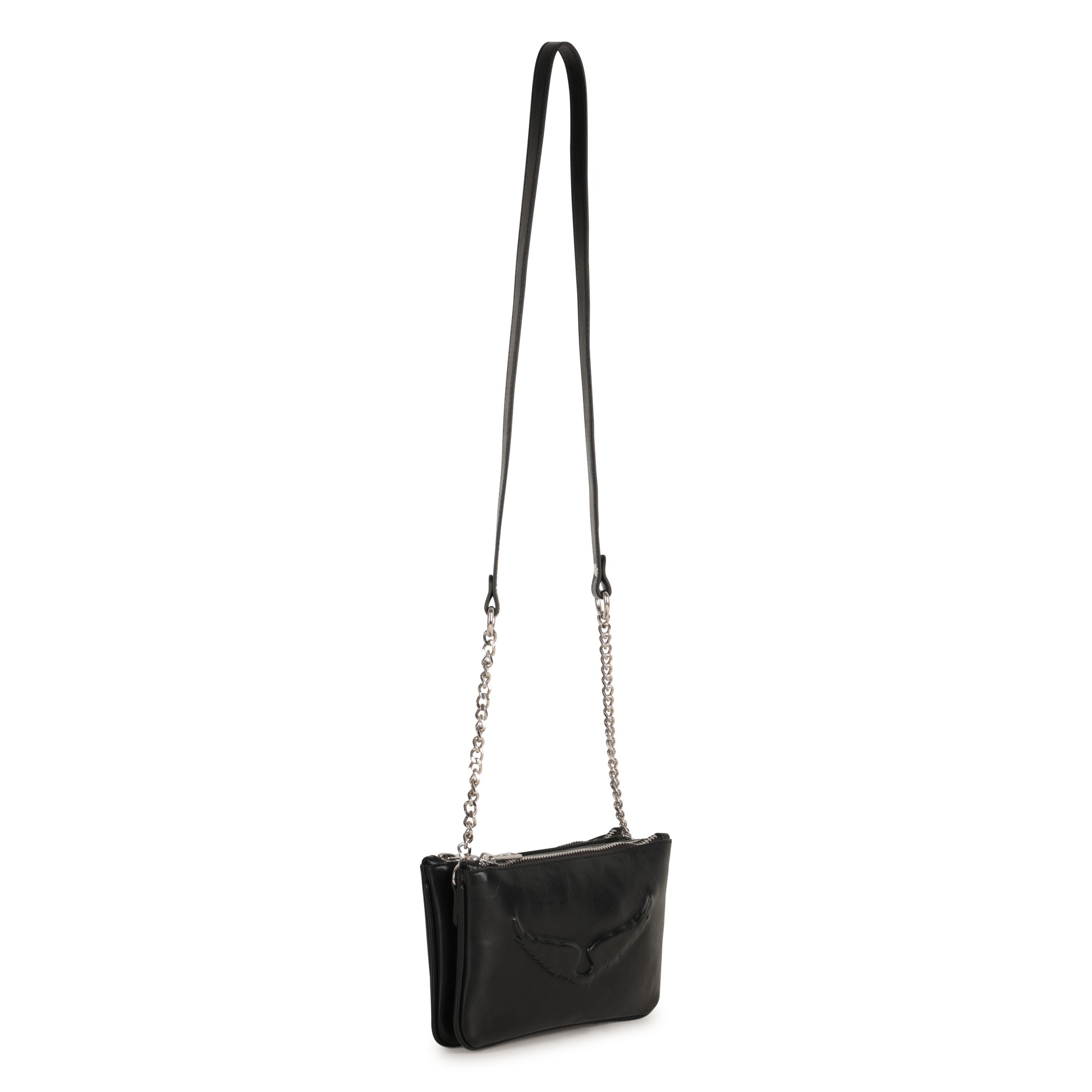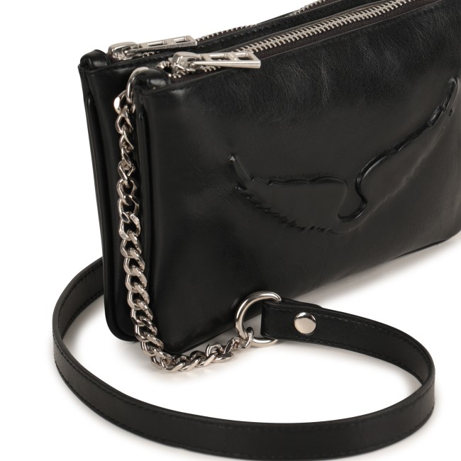 ZADIG&VOLTAIRE propose un sac à main au look affirmé, sublimé par une illustration "Ailes" en relief silicone et une signature métallique brillante. Son textile enduit lisse et sa fermeture zippée siglée en font un accessoire à la fois pratique et stylé. Un format allongé parfait pour un porté structuré au quotidien.