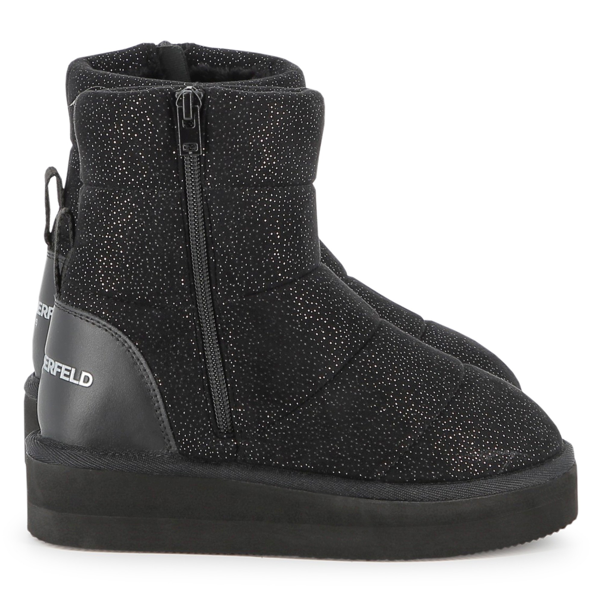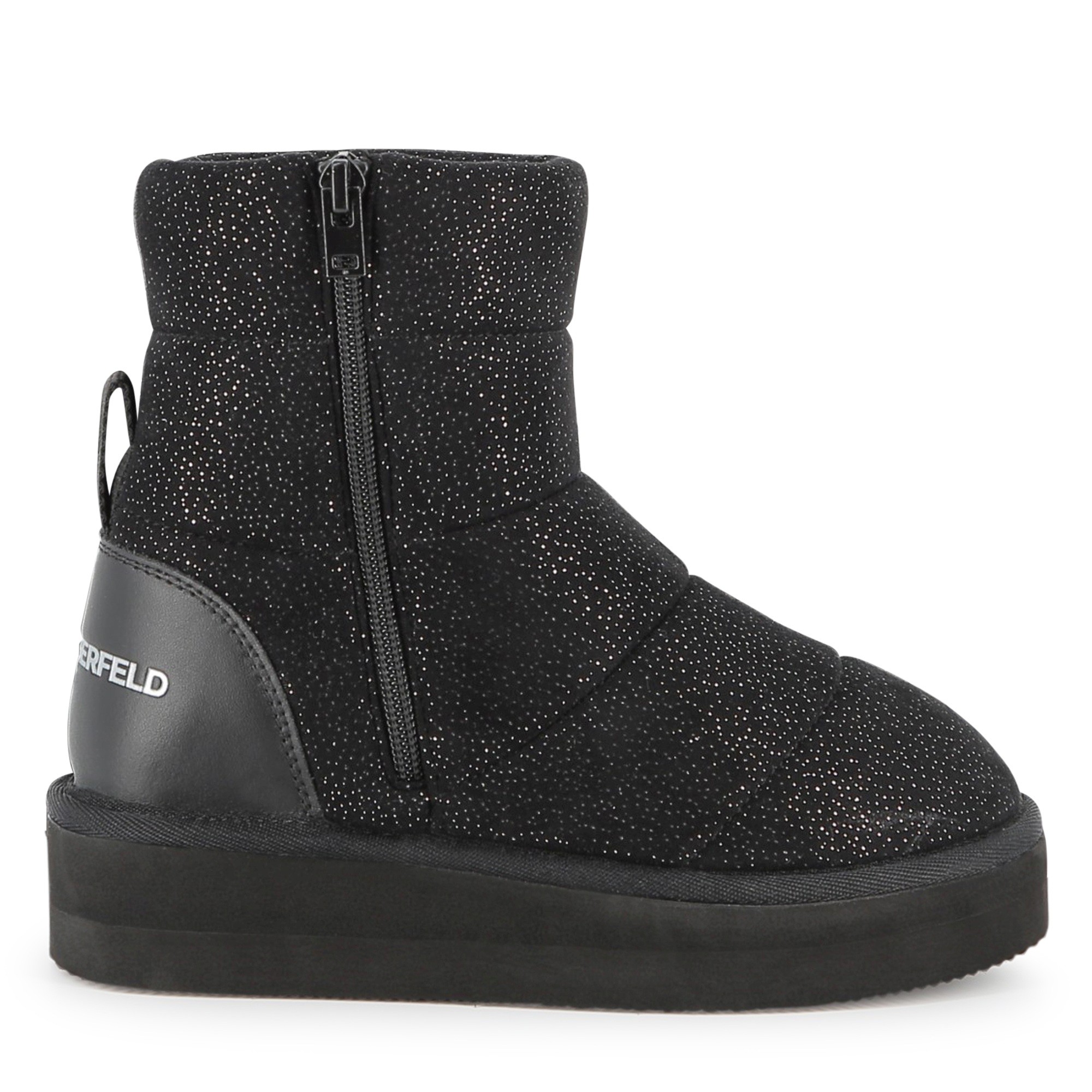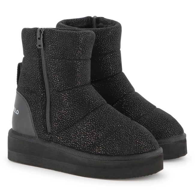 Brillantes et festives, ces bottines en textile pailleté illuminent toutes les tenues. Faciles à enfiler grâce à leur zip, elles incarnent l'élégance audacieuse de KARL LAGERFELD KIDS pour les petites fashionistas.