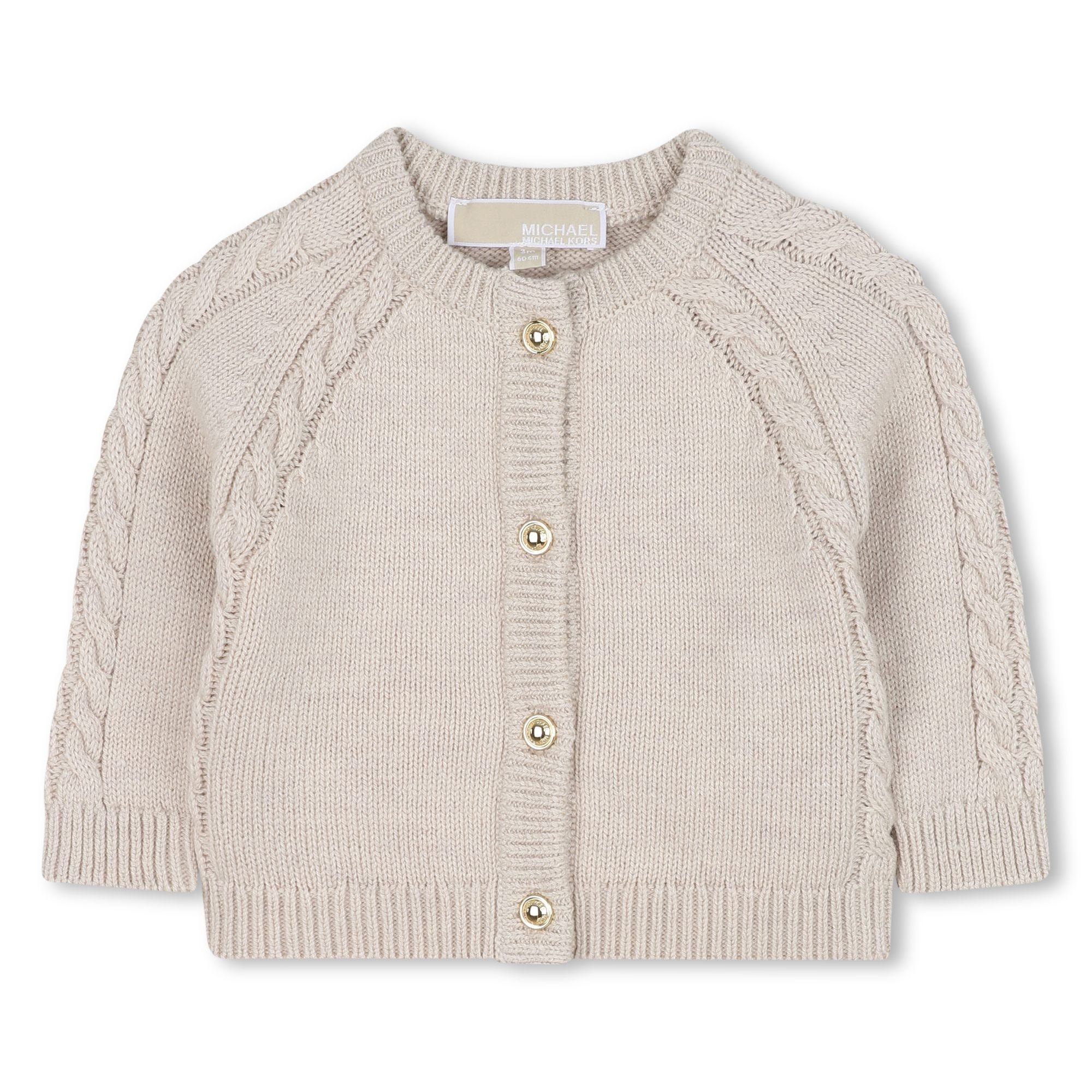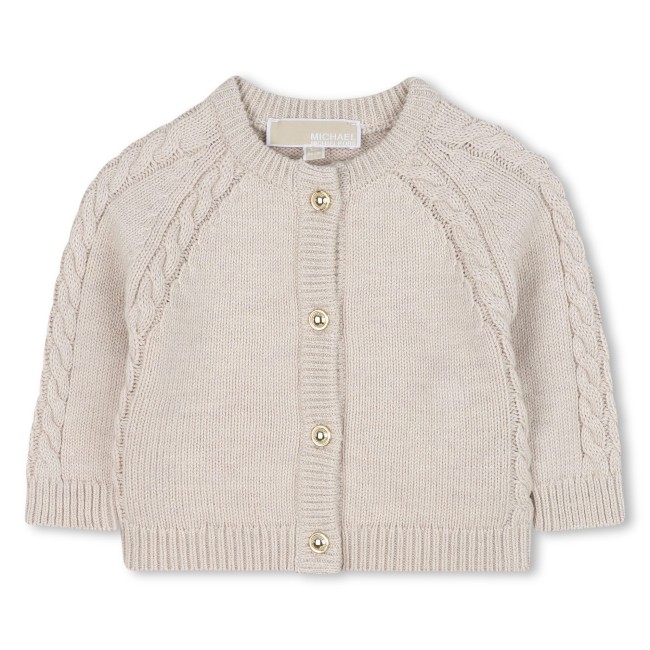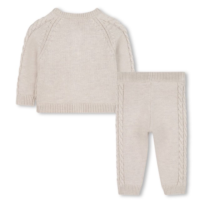 Élevez votre look avec cet ensemble tricot MICHAEL KORS, où confort et élégance se rencontrent. Le cardigan, orné de torsades délicates sur les manches et le devant, se ferme élégamment avec une boutonnière siglée. Le pantalon assorti, avec sa ceinture élastiquée et ses torsades raffinées sur les côtés, ajoute une touche de sophistication à ce duo intemporel.