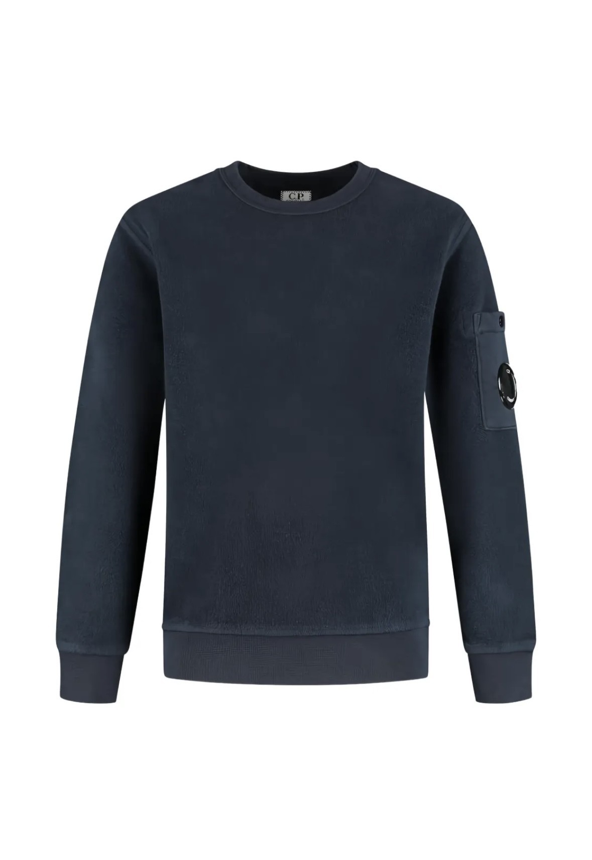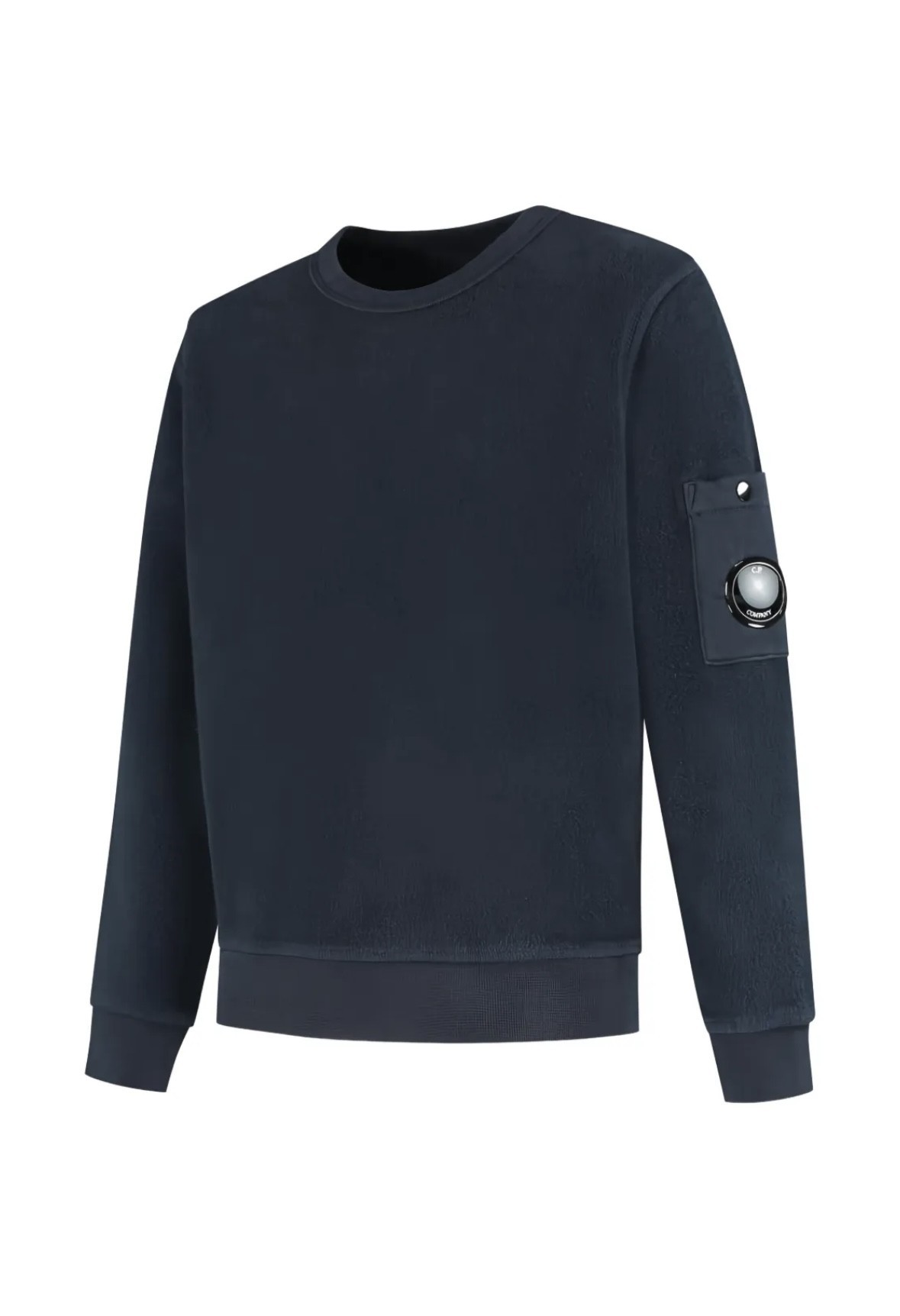 - SWEAT BLEU MARINE : texture polaire en extérieur. Poche avec lentille sur le bras. 100% coton.