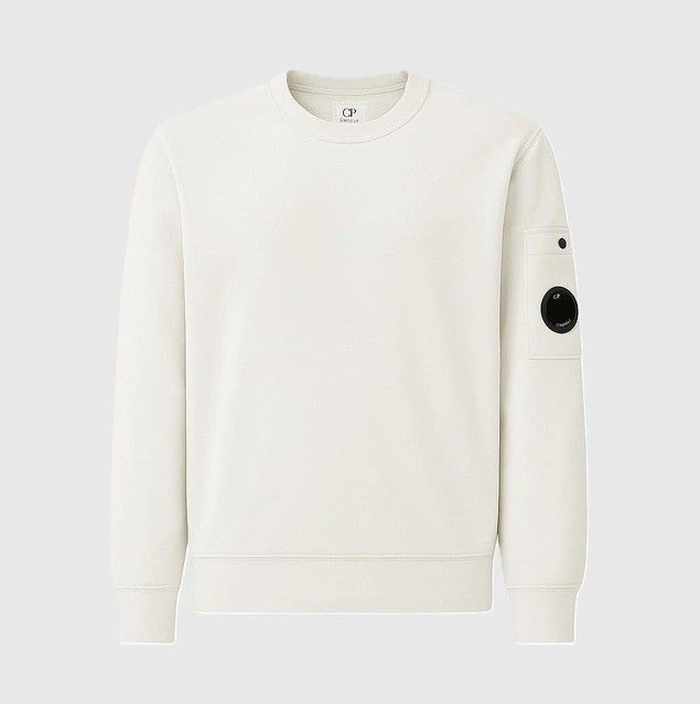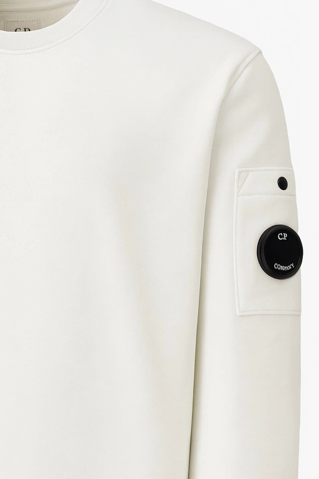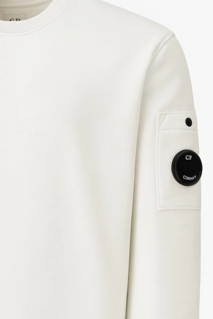 SWEAT BLANC : Sweat ras du cou confectionné en polaire légère. Ce sweat comporte un col ras du cou côtelé, la lentille emblématique de C.P. Company, ainsi que des poignets et un ourlet côtelés. Teint en pièce. Coupe régulière.
