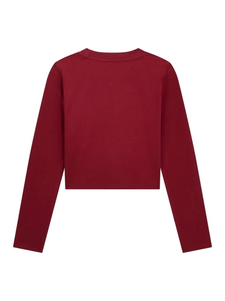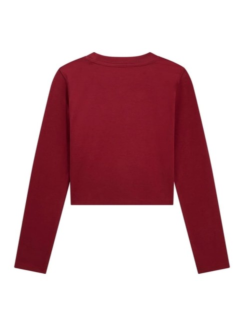 Tee-shirt manches longues bordeaux avec logo latéral et strass