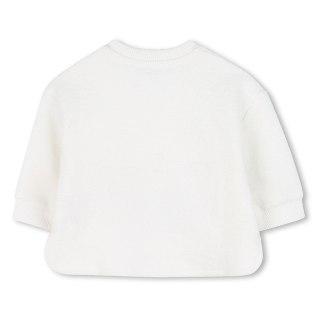 Confort et originalité s'invitent dans cet ensemble signé KENZO KIDS, composé d'un sweat et d'un pantalon en molleton fantaisie. Le haut, à la coupe décontractée, présente une jolie broderie sur la poitrine et des pressions à l'épaule pour un enfilage facile. Le pantalon coordonné, avec sa taille souple et ses poches latérales, se pare d'un motif brodé au dos pour une touche finale graphique. Une tenue douce et stylée pour les petits explorateurs.