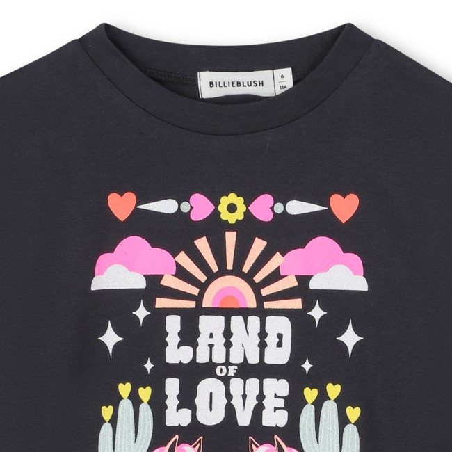 Ce t-shirt en jersey BILLIEBLUSH est un modèle confortable et lumineux. Avec ses manches longues et son encolure ronde, il offre un confort optimal. L'illustration brillante sur le devant ajoute une touche éclatante et moderne. Sa forme confort assure une coupe ample et décontractée, idéale pour une apparence stylée et confortable.