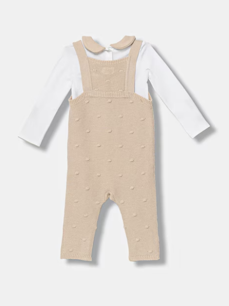 Ensemble 2 pièces: body manches longues + salopette en maille unisexe