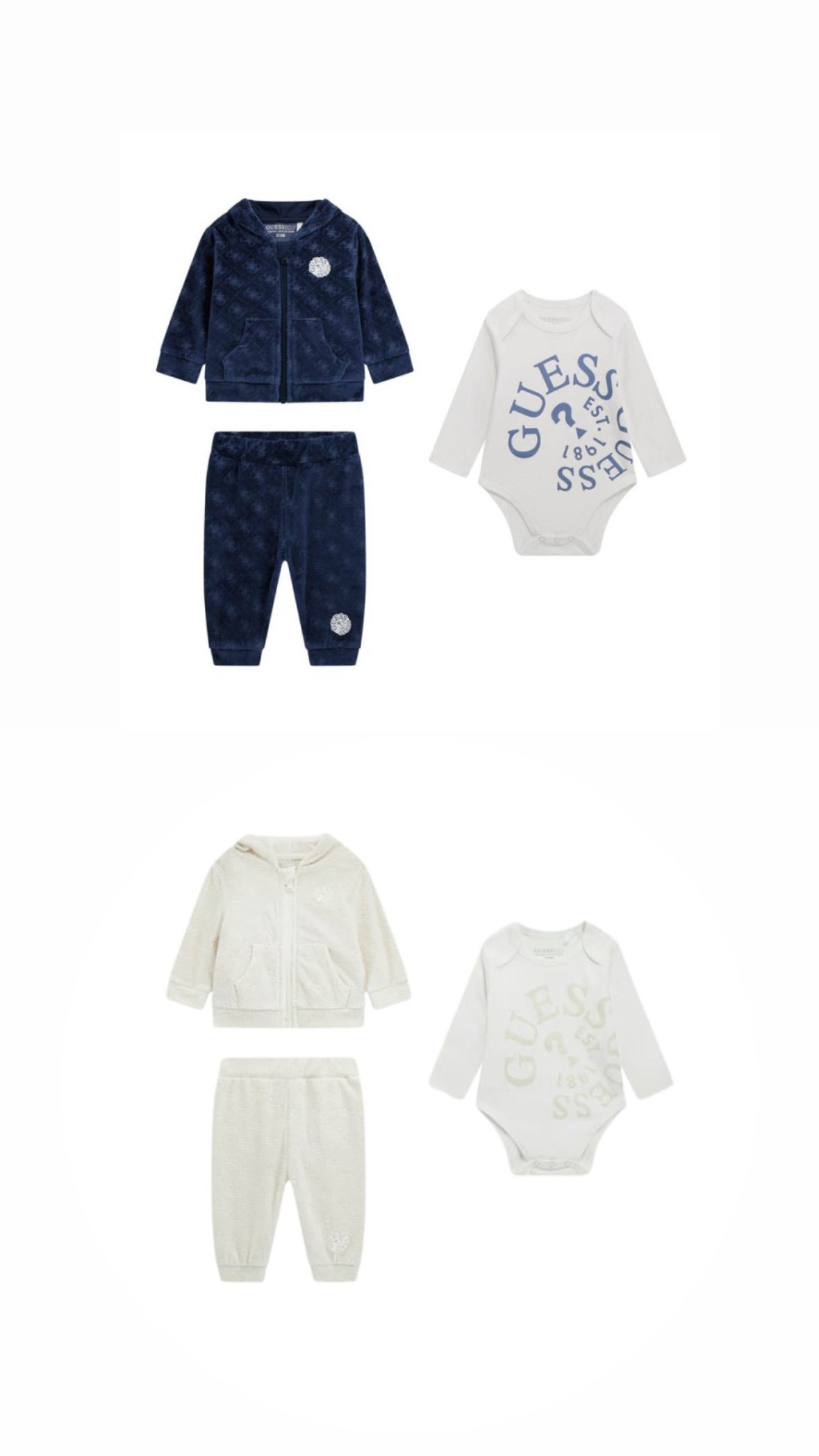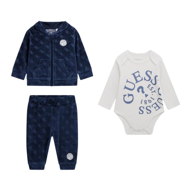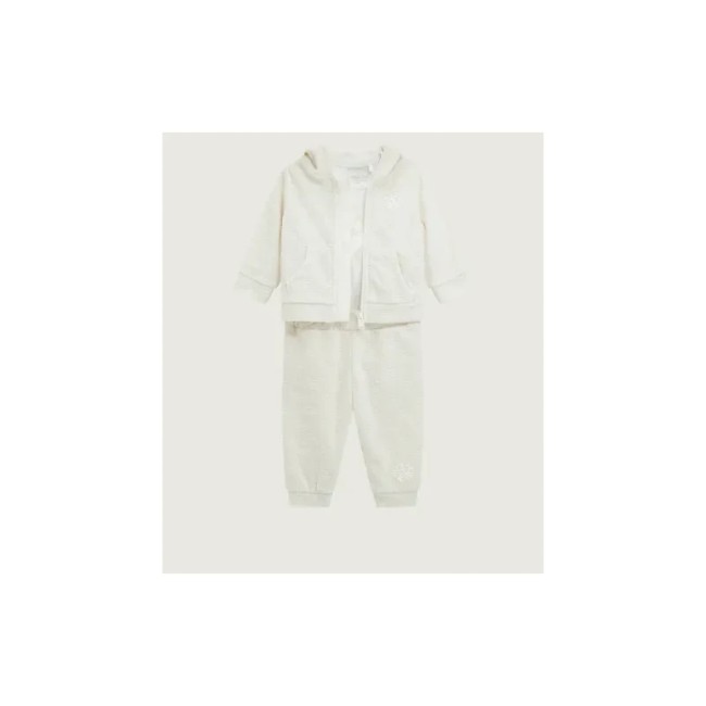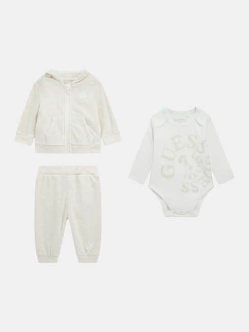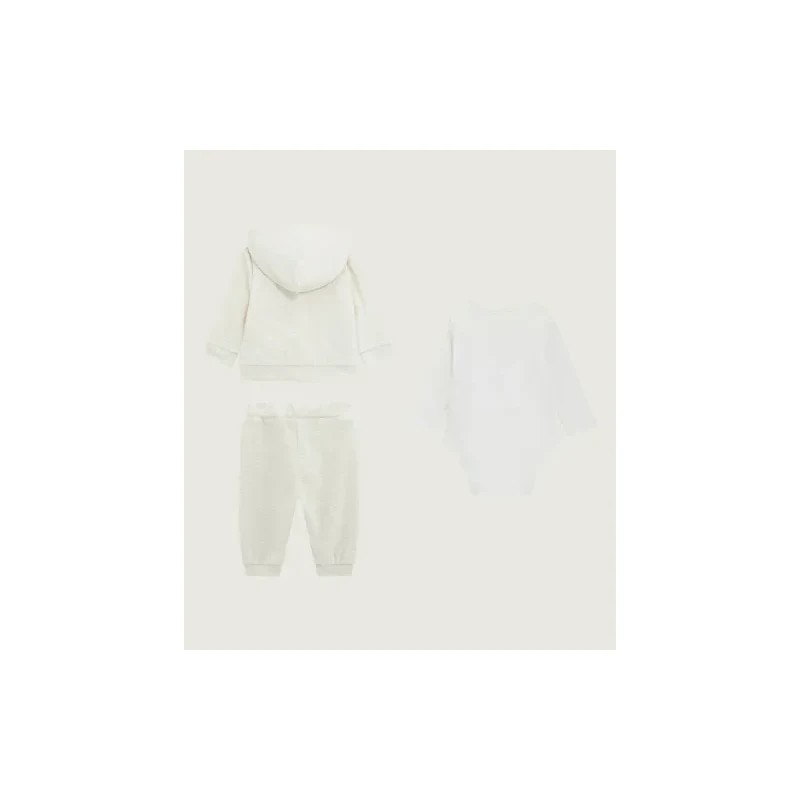 Ensemble 3 pièces : ensemble jogging en velours à capuche + body blanc manches longues avec logo