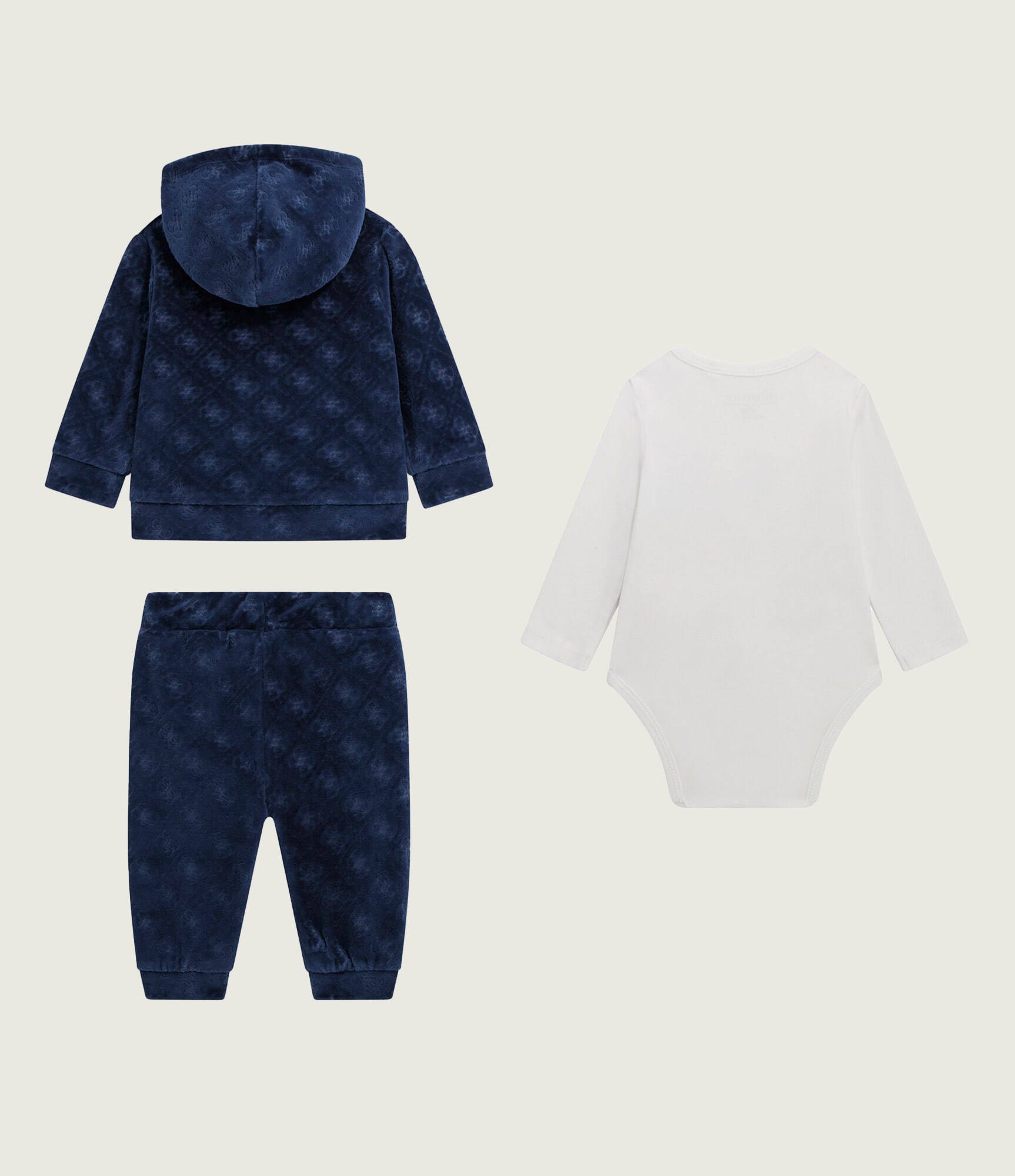 ensemble 3 pièces : ensemble jogging en velours bleu marine à capuche + body blanc manches longues avec logo bleu marine