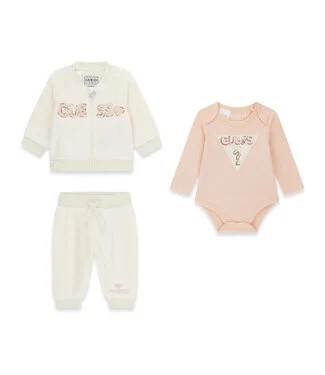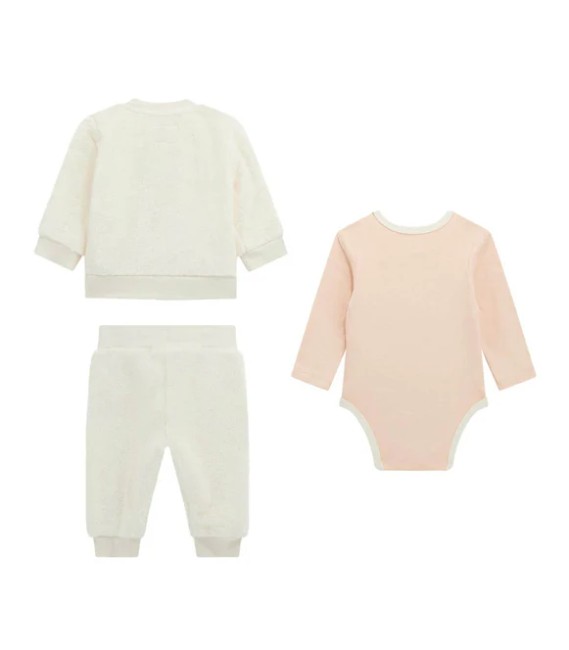 Ensemble 3 pièces: ensemble jogging en velours blanc + body manches longues blush