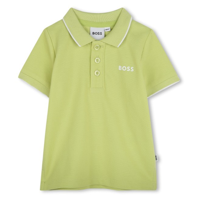 Ce polo BOSS à manches courtes a la forme droite. Le col et les manches sont agrémentés de rayures ainsi que d'une bande contrastée. Un logo est imprimé sur la poitrine. Ce modèle est composé en 100 % coton.