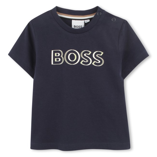Ce T-shirt BOSS à manches courtes arbore un logo imprimé sur le devant. Il est équipé d'une fermeture à pressions sur l'épaule. Ce modèle est conçu dans un tissu en 100 % coton.