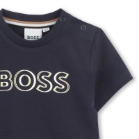 Ce T-shirt BOSS à manches courtes arbore un logo imprimé sur le devant. Il est équipé d'une fermeture à pressions sur l'épaule. Ce modèle est conçu dans un tissu en 100 % coton.