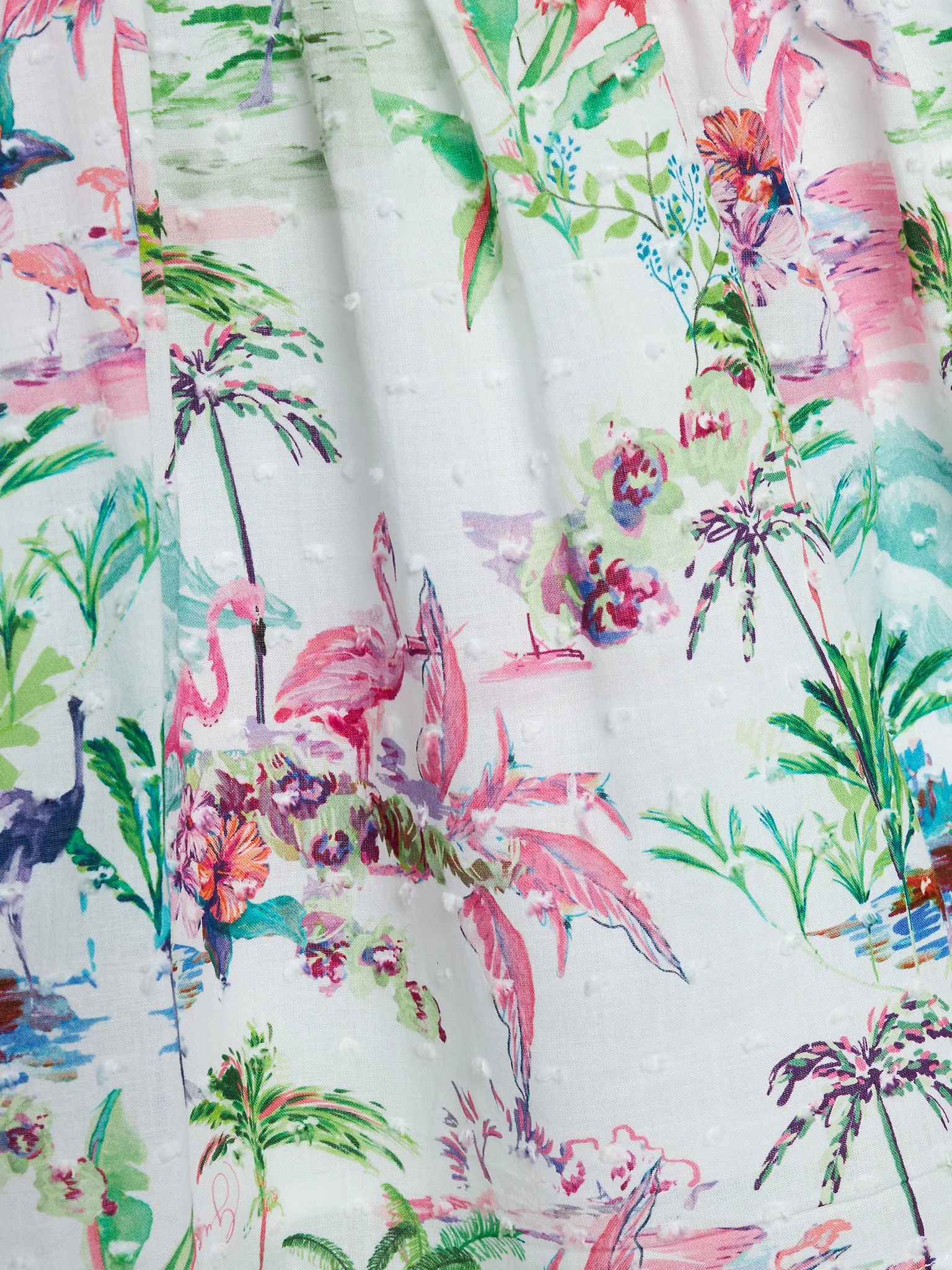 robe sans manches, haut blanc brodé, bas imprimé tropical