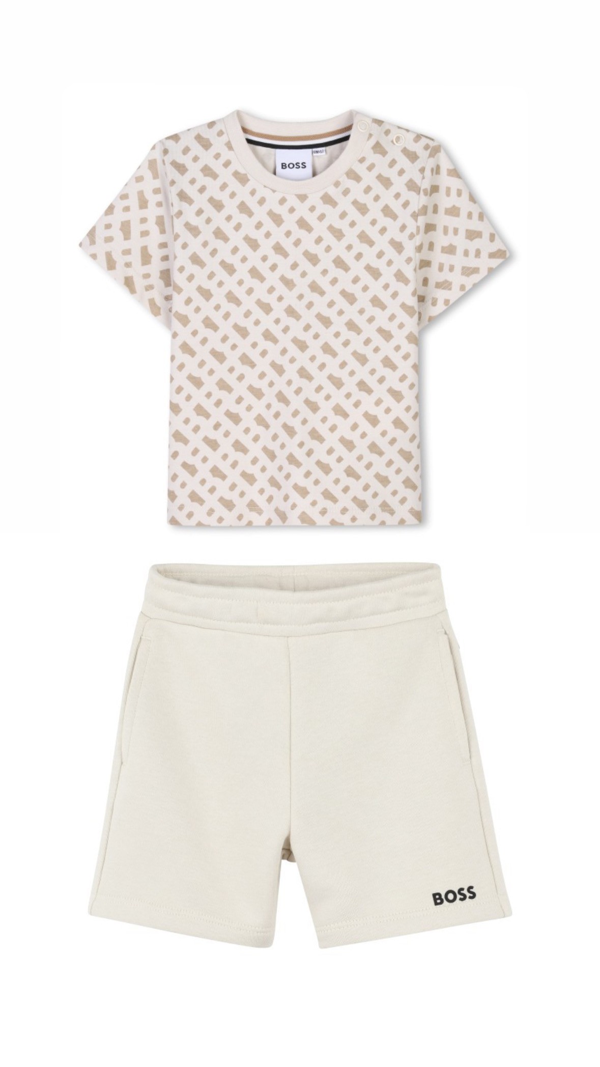 ensemble tee-shirt beige allover + short molleton beige assorti BOSS
