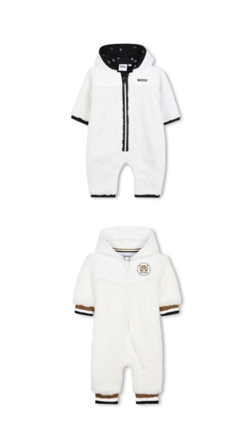 Coffret pyjama + bonnet en velours blanc BOSS, 3 mois