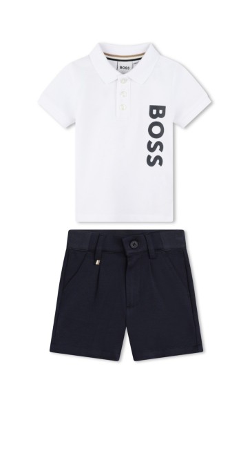 Ensemble 2 pièces polo blanc et short marine BOSS