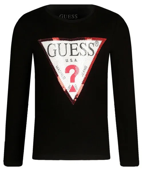 Tee-shirt noir logo sequins GUESS, 6 ans