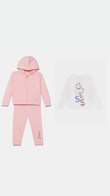 Ensemble 3 pièces rose/blanc GUESS, 3/6 mois