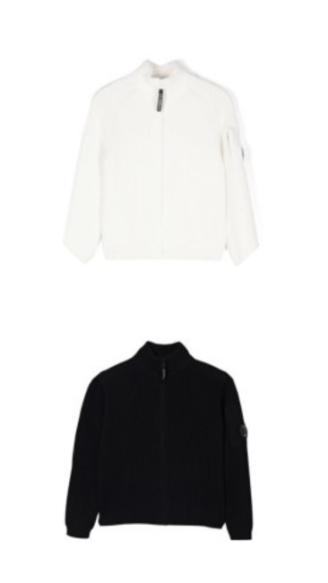 Cardigan zippé en maille blanc ou noir avec lentille CP COMPANY, 12 ans
