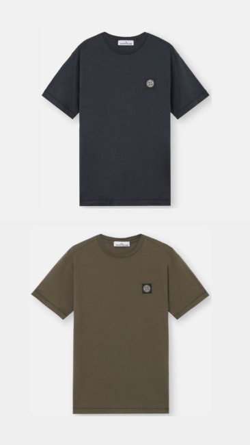 Tee-shirt manches courtes à logo en coton bleu ou kaki STONE ISLAND